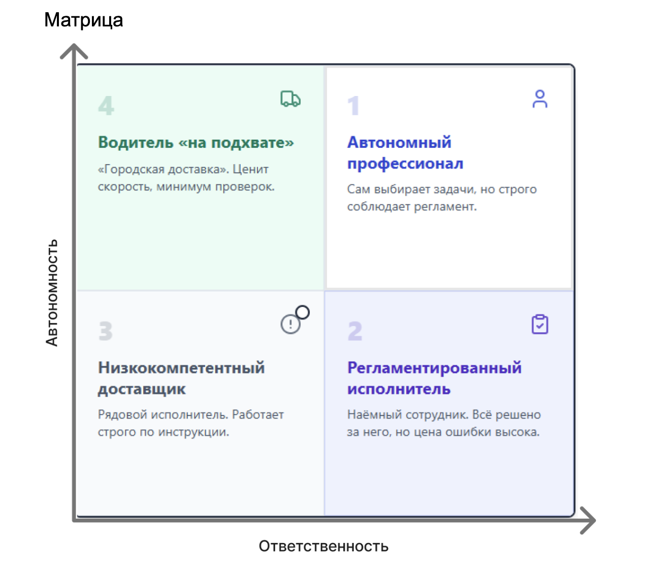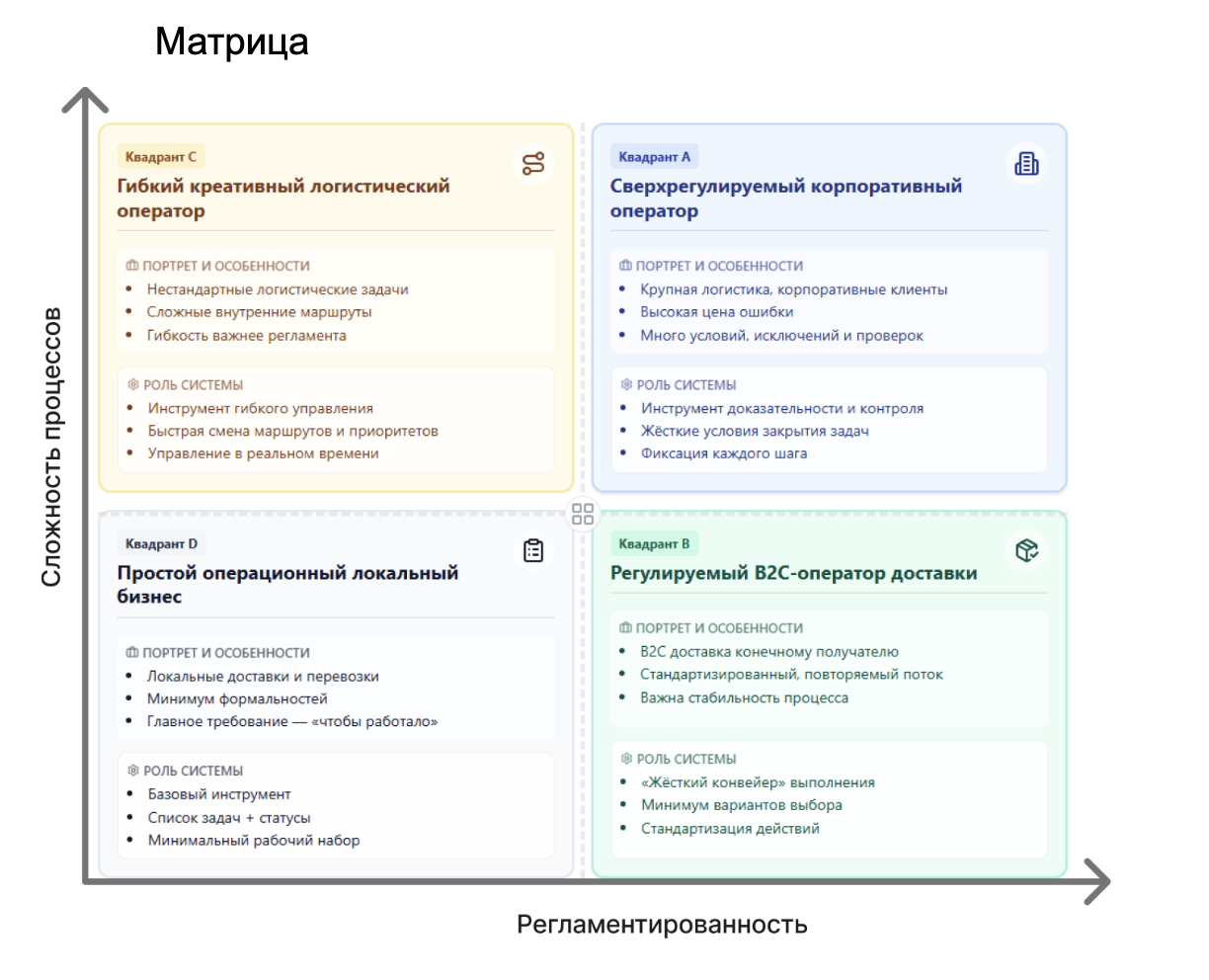 Выделили 4 типа водителей и 4 типа бизнесов.