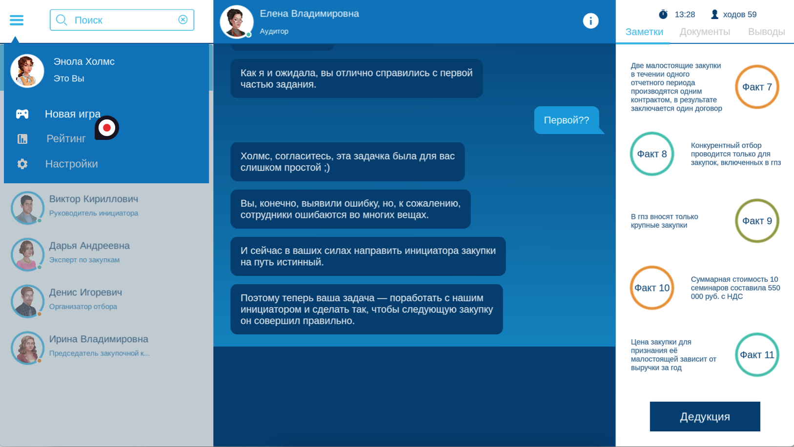 UX-аудит сервисов «Газпрома» • Образовательная игра «Шерлок» • Собака Павлова Образовательная игра «Шерлок». Дедукция