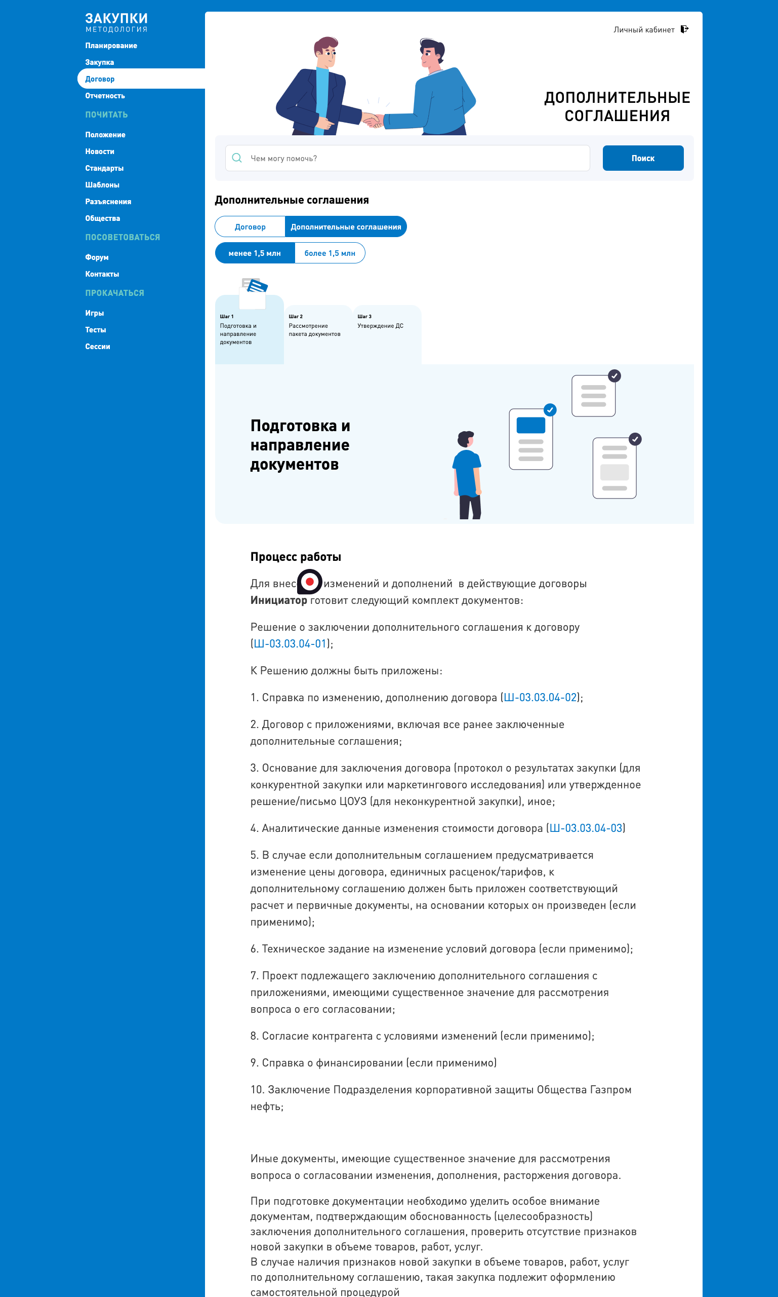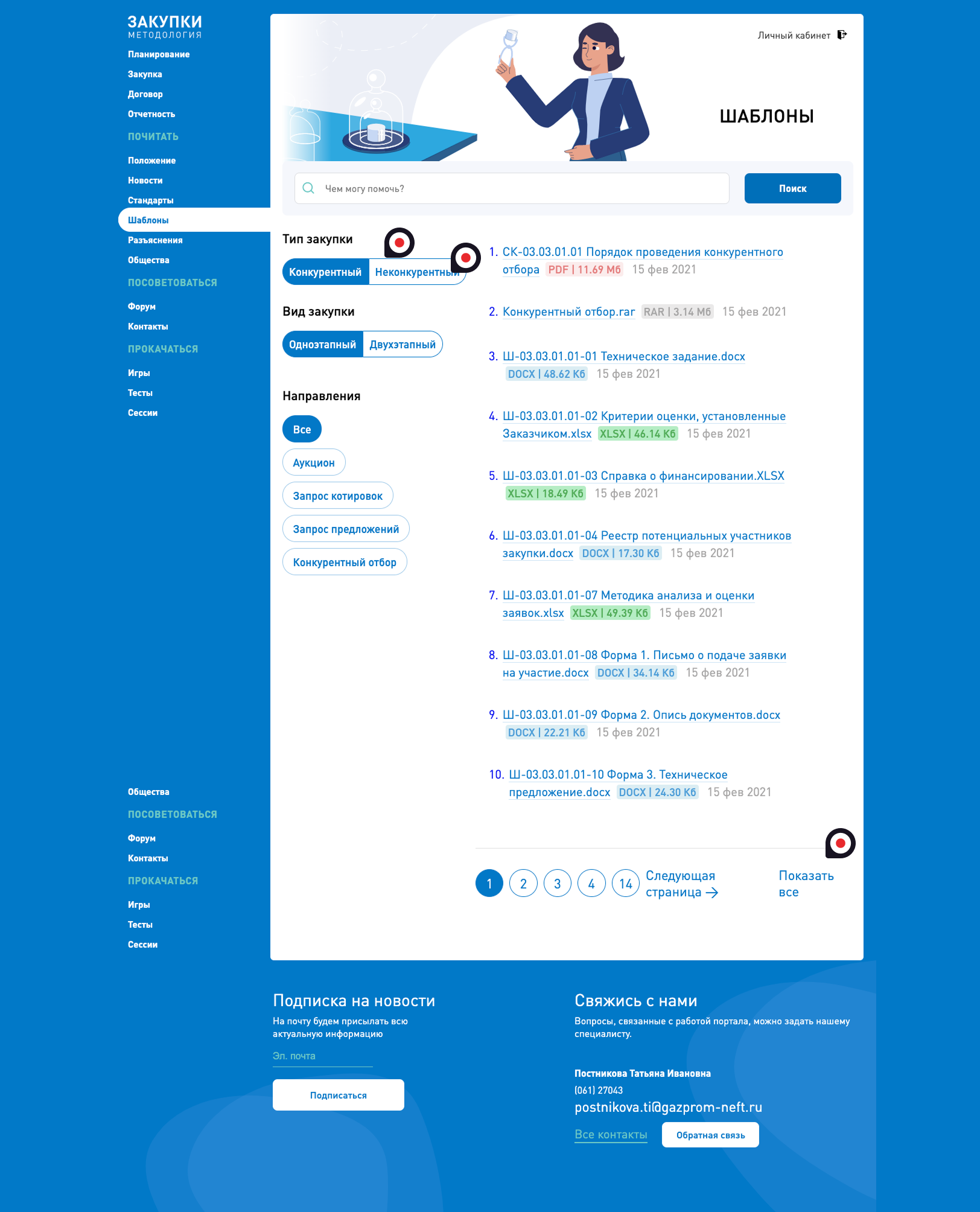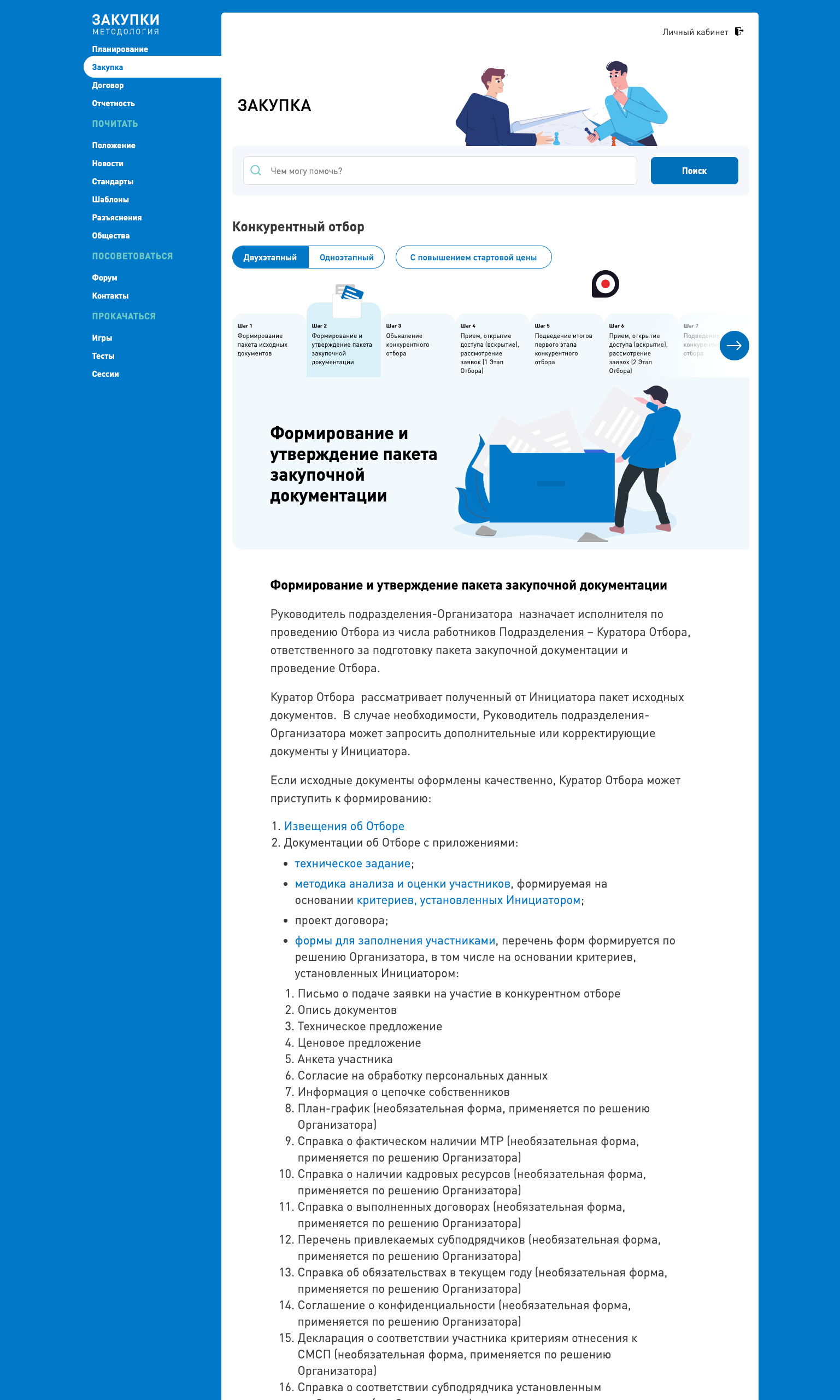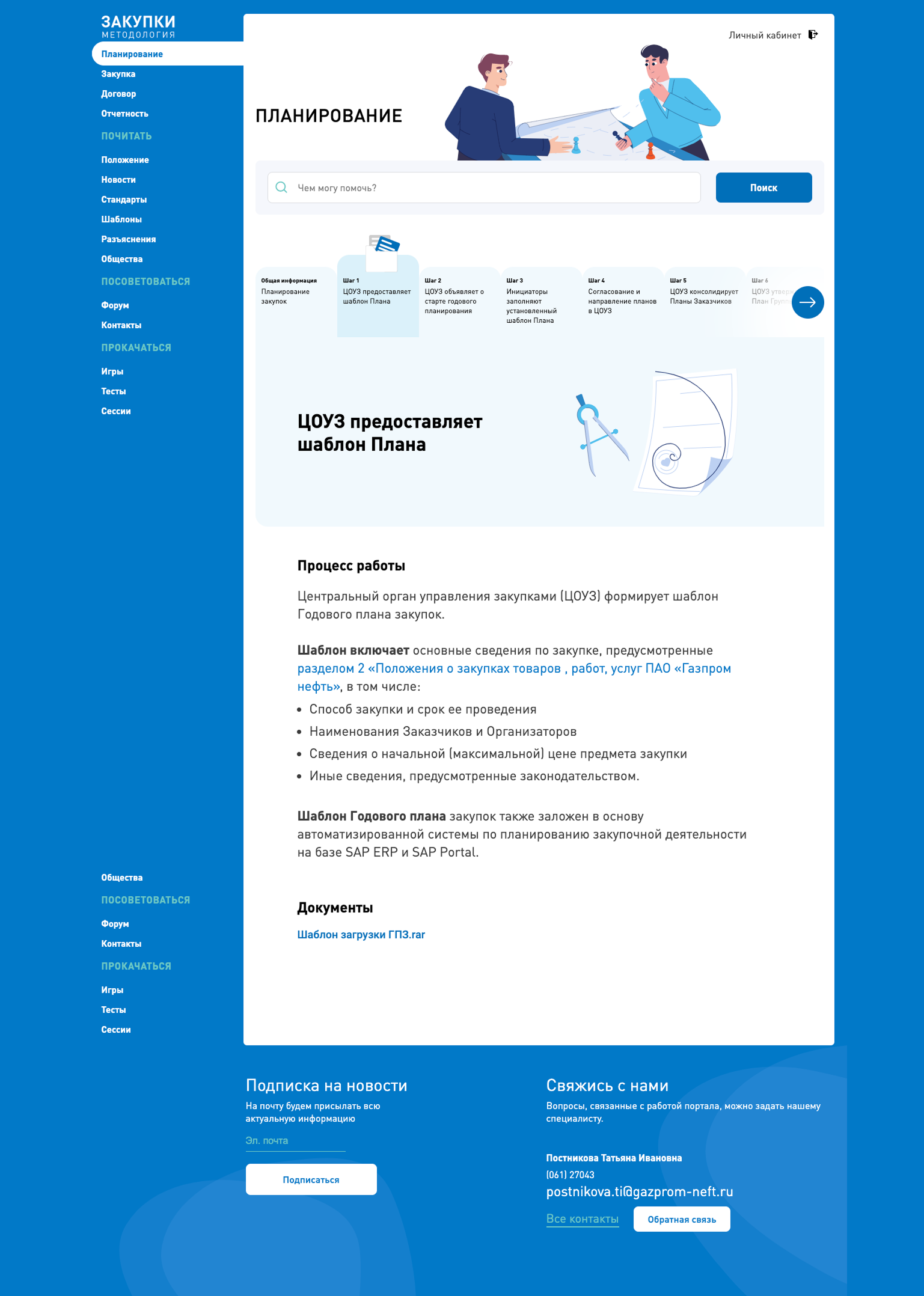 Наша команда уже проводила UX-аудит «Интерактивного Положения о закупках товаров» — одного из таких порталов. Тогда мы подробно разобрали закупочный процесс, описали пользовательские сценарии и собрали CJM для разных ролей. Эта работа получила высокую оценку заказчика. А когда появились новые сервисы, за их аудитом «Газпром» снова обратился к нам.