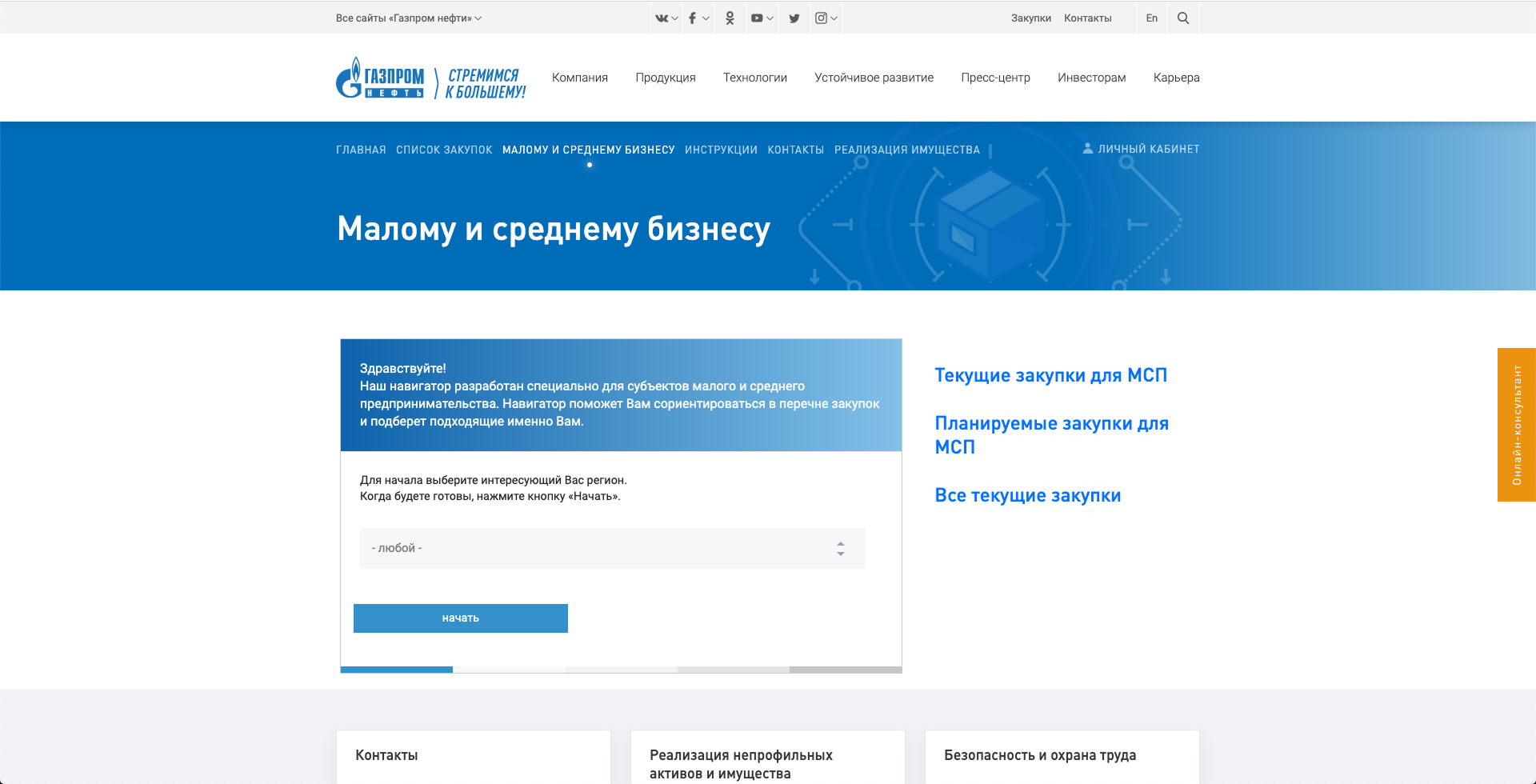 «Навигатор МСП» • UX-аудит сервисов «Газпрома» • Собака Павлова «Навигатор МСП». Поиск по закупкам