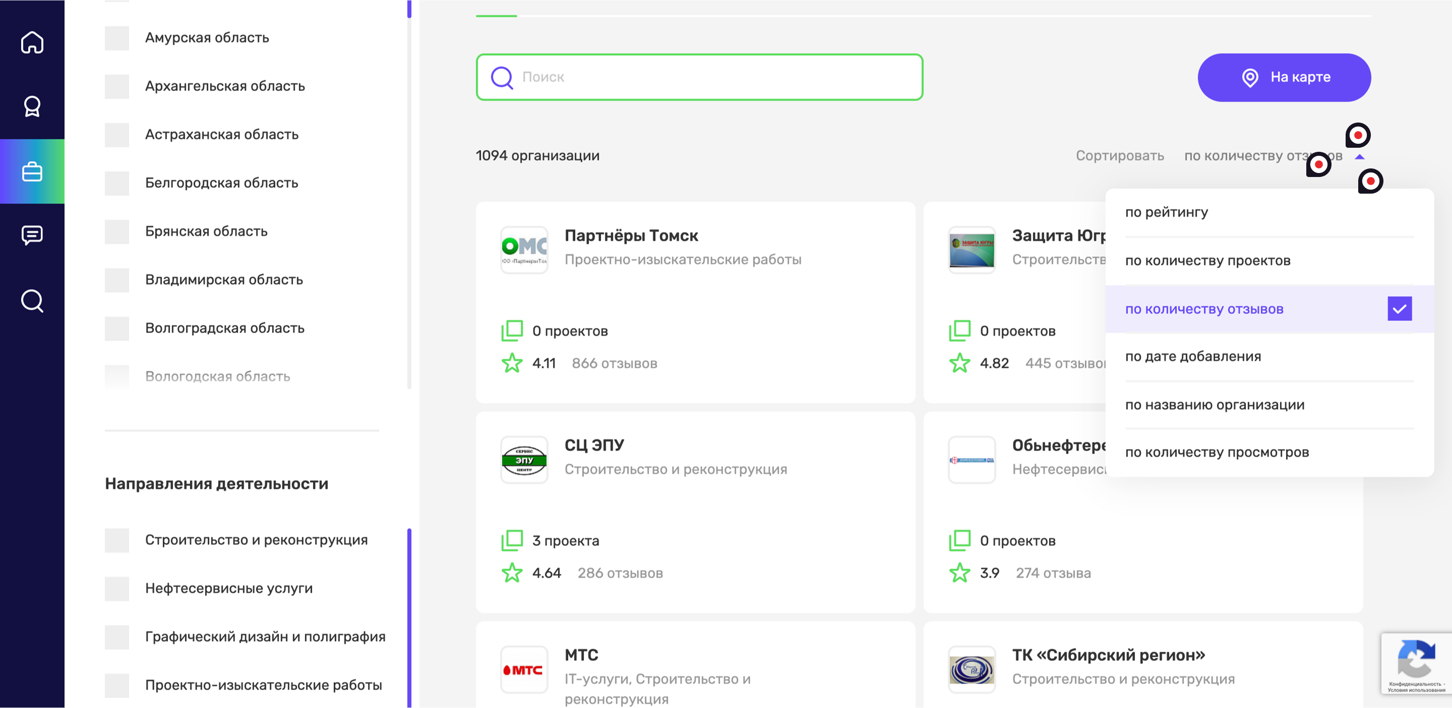 Сервис «Мнения» • UX-аудит сервисов «Газпрома» • Собака Павлова Сервис «Мнения». Рейтинг организаций. Фильтр