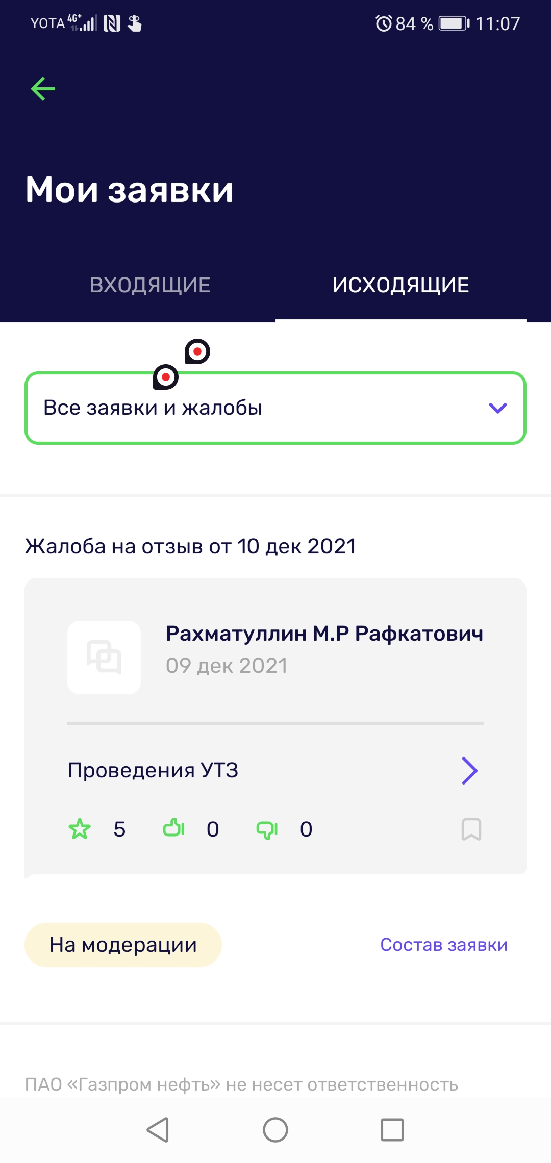 Сервис «Мнения» • UX-аудит сервисов «Газпрома» • Собака Павлова Сервис «Мнения». Мои заявки