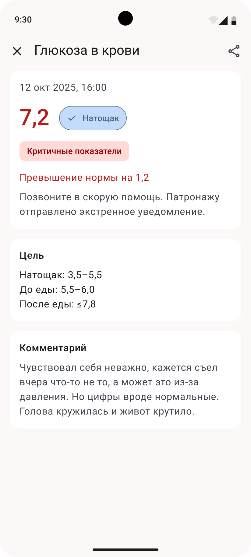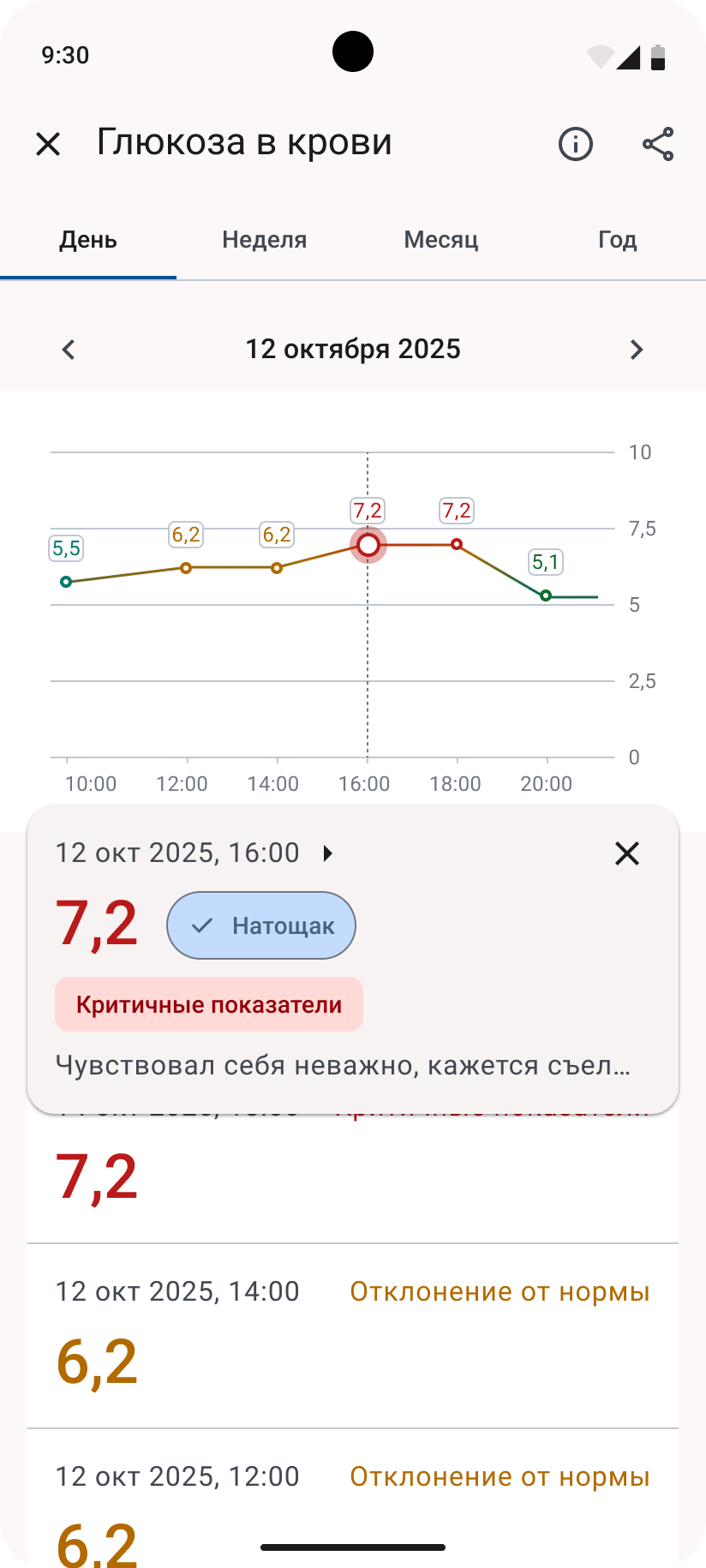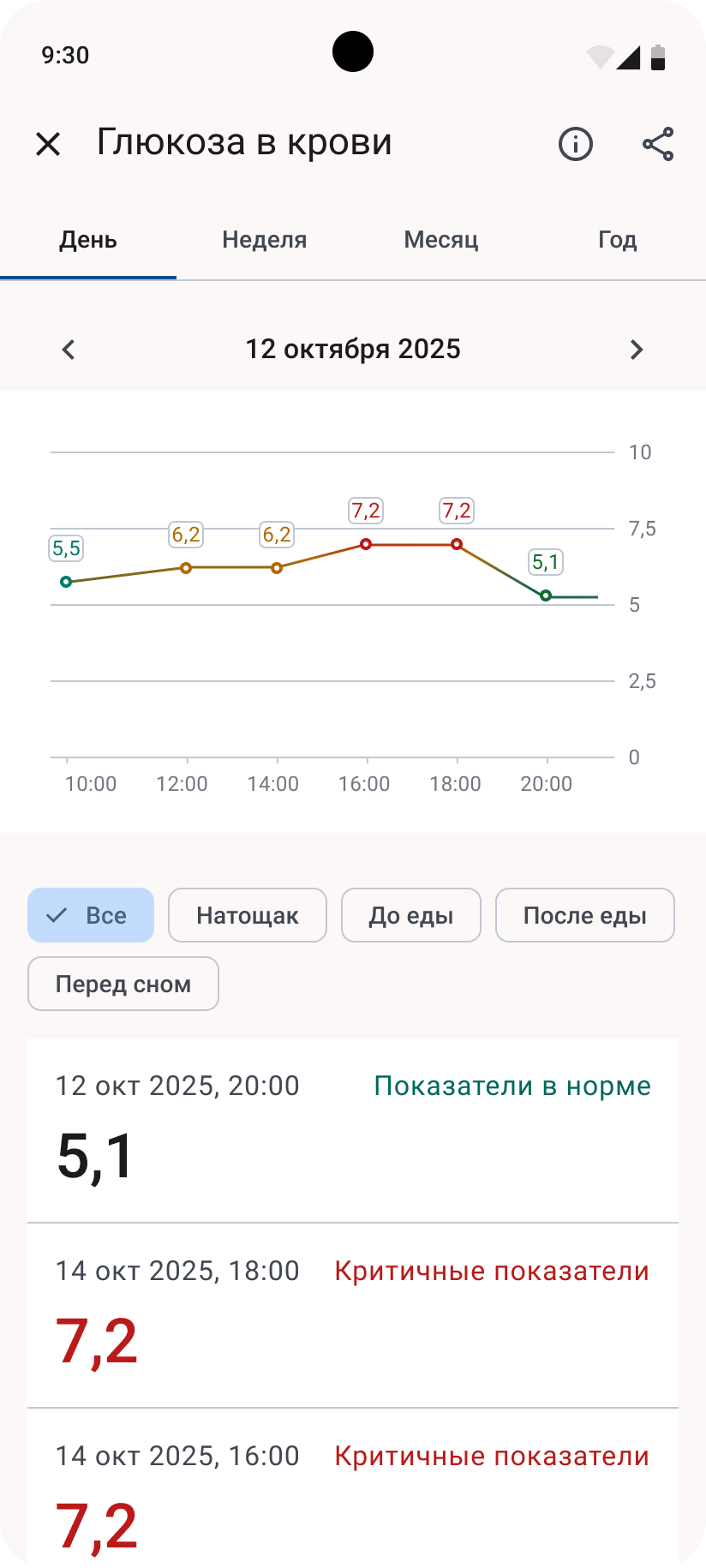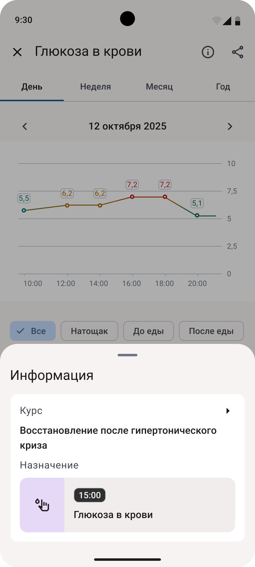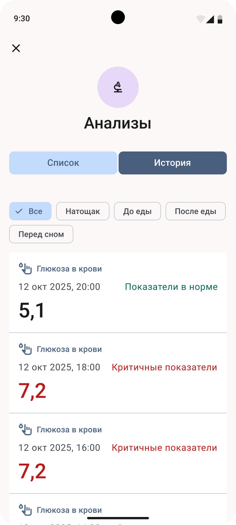 - Анализы (навигация). Детализация на примере истории анализов глюкозы.