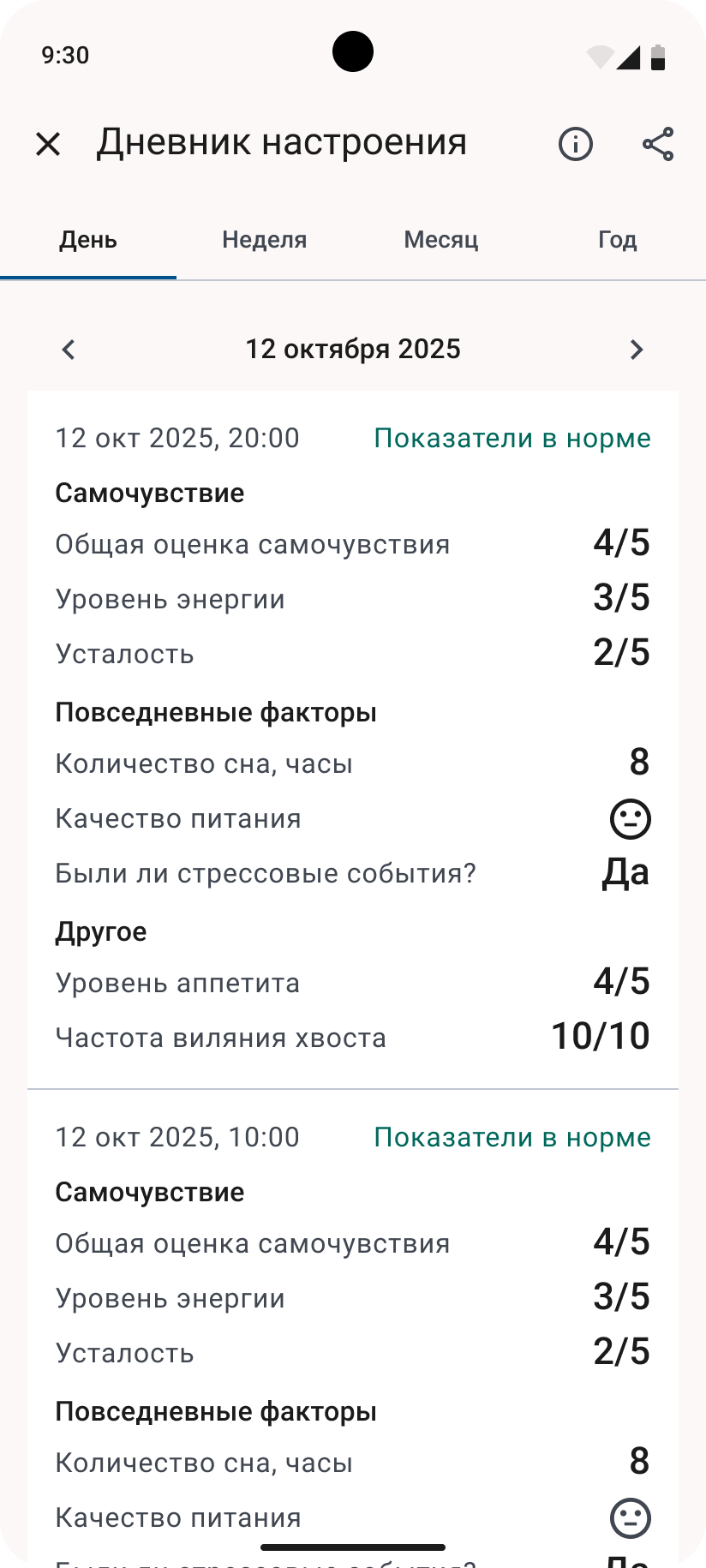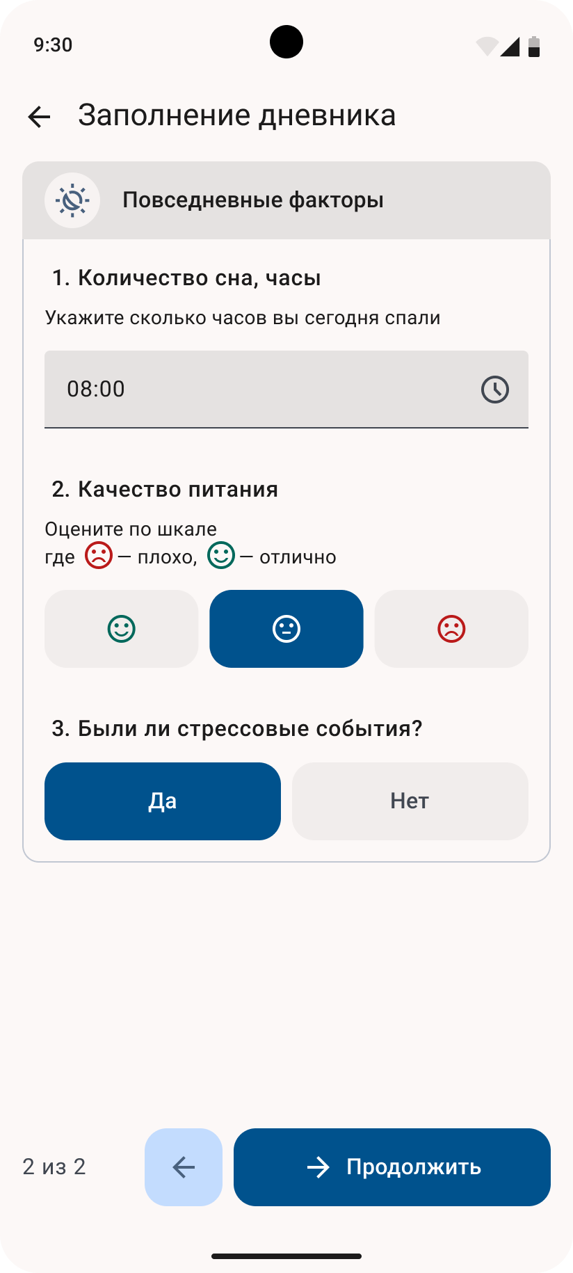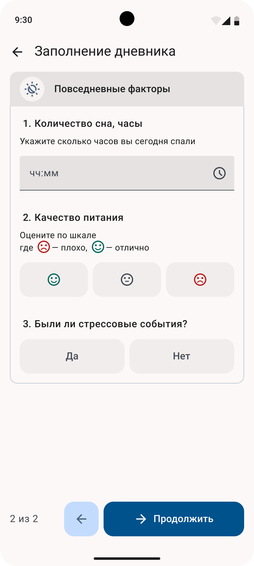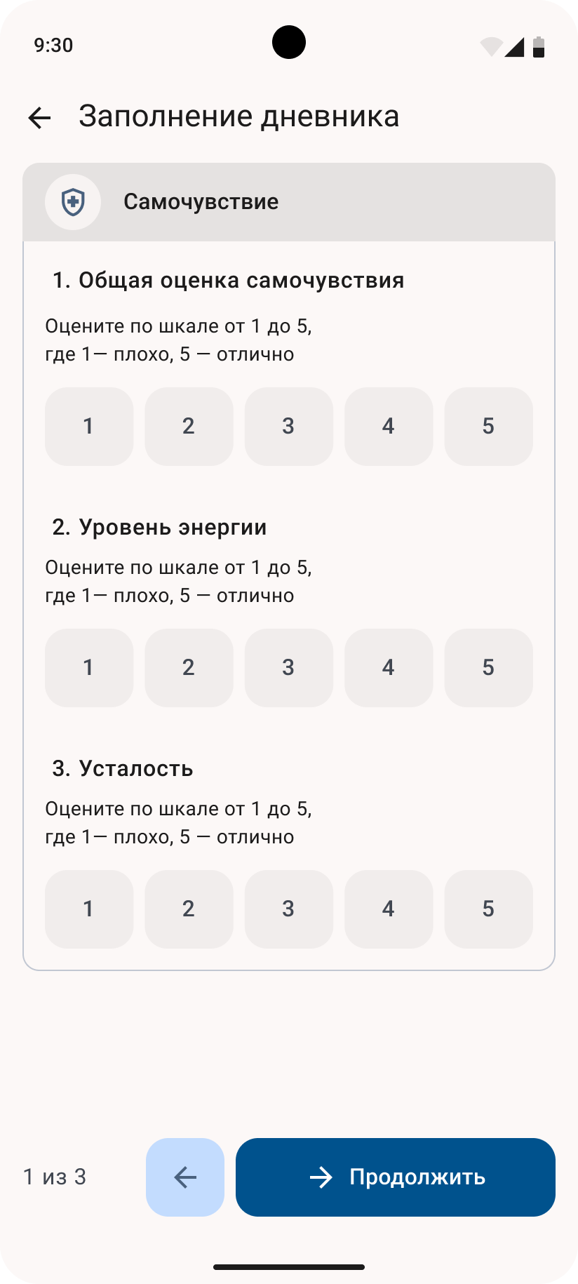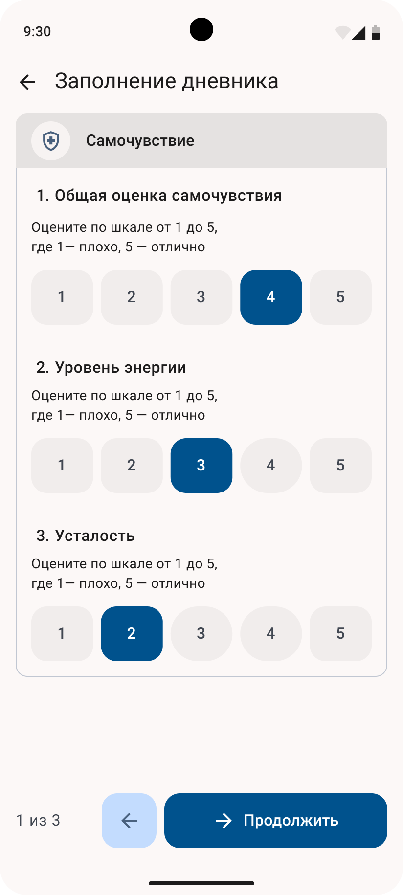 - Заполнить дневник (детализация на примере дневника самочувствия)