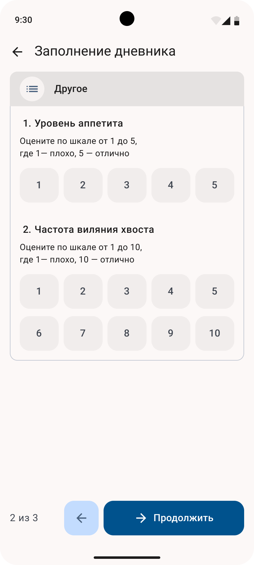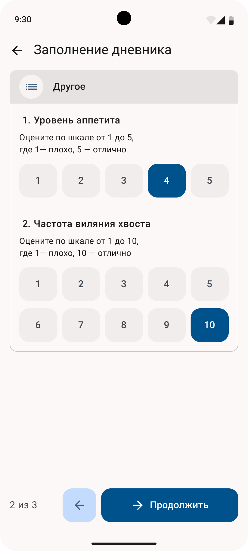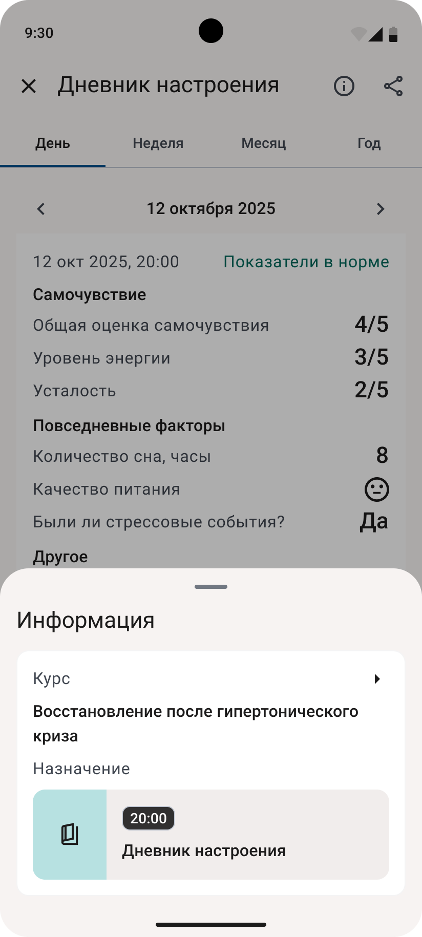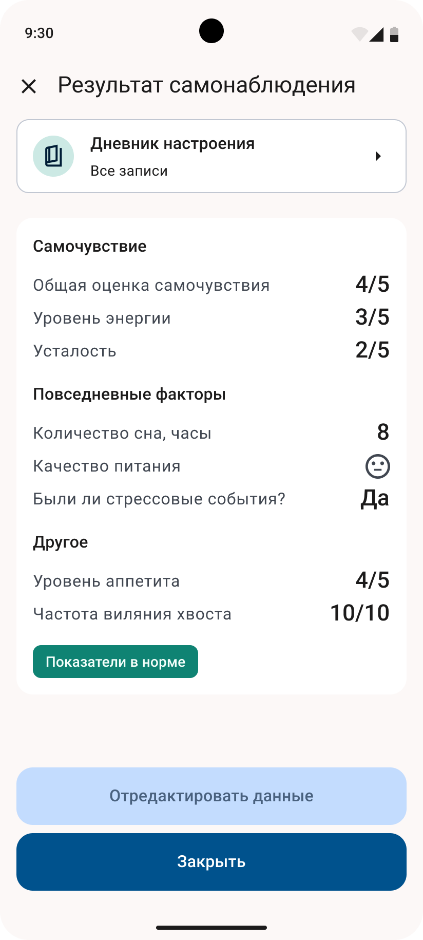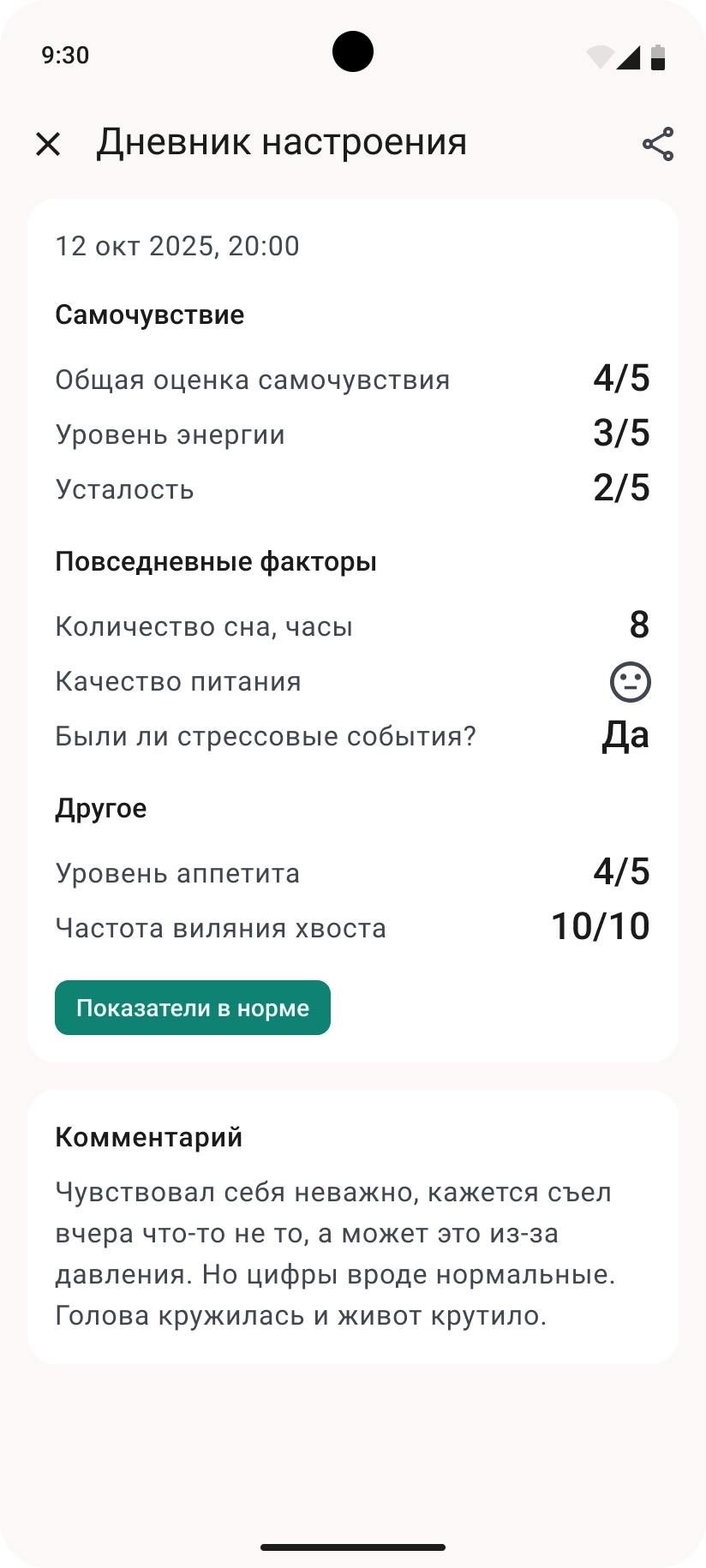 - Заполнить дневник (детализация на примере дневника самочувствия)
