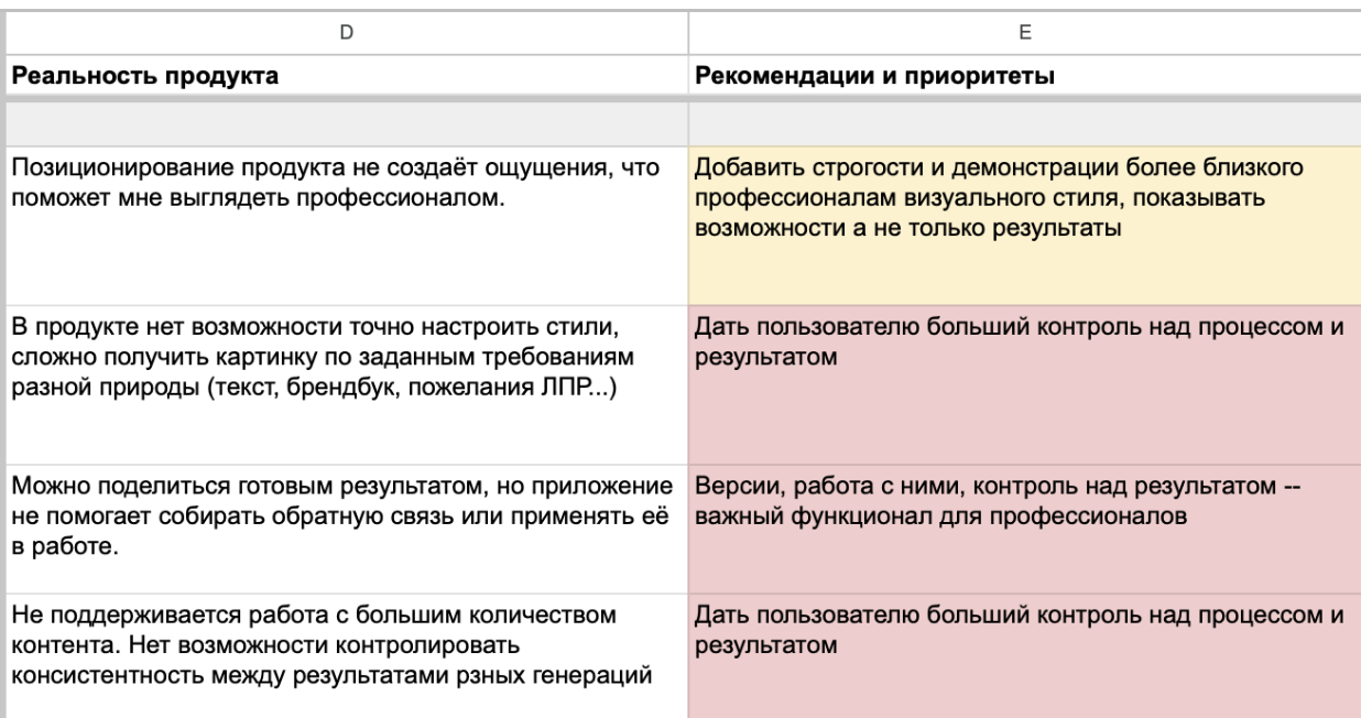 Мы не только составили список Jobs To Be Done (JTBD), но и проанализировали, как каждая работа сейчас выполняется в продукте, и дали рекомендации по улучшению.