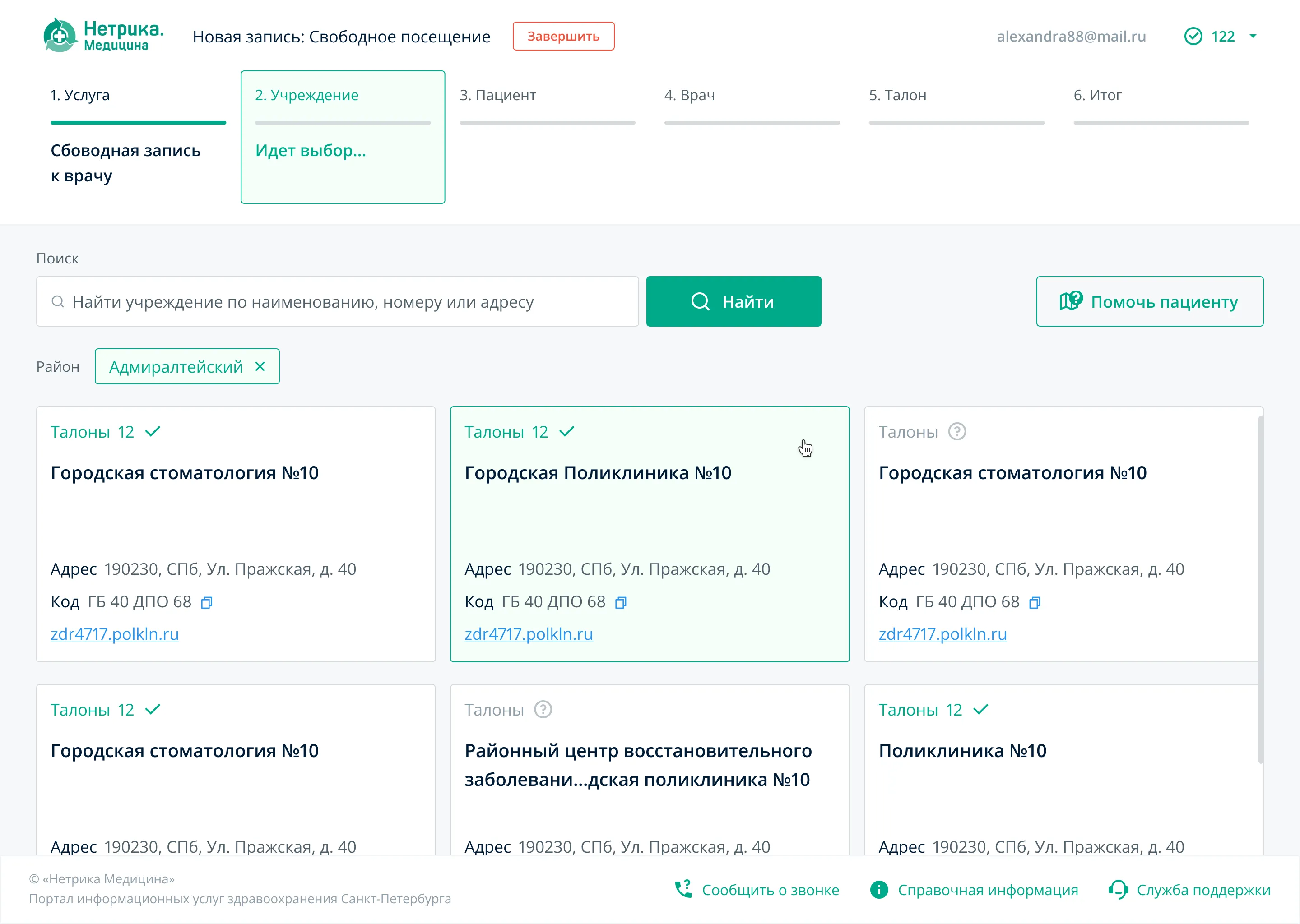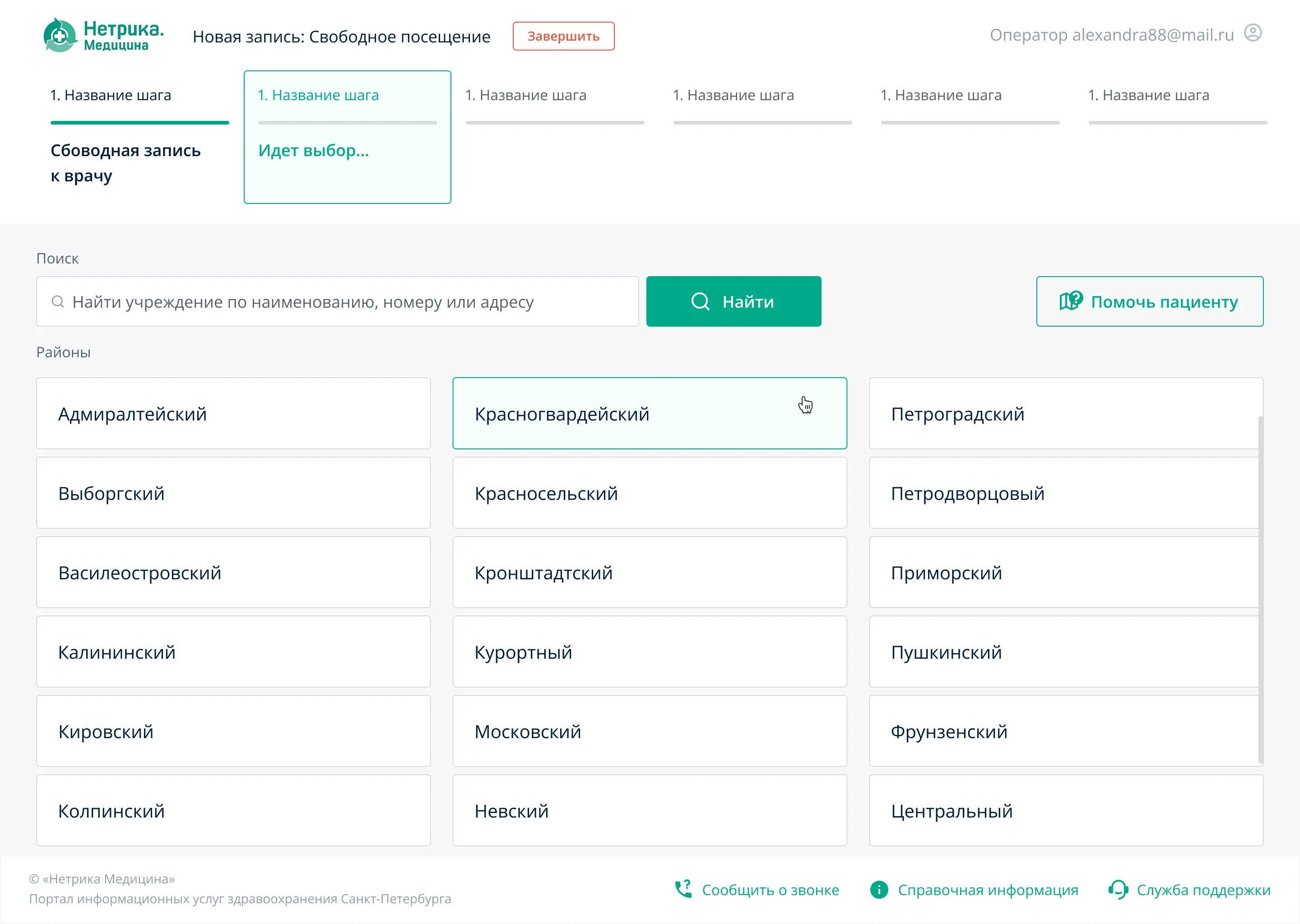 Запись к врачу. Выбор учреждения. Выбираем район