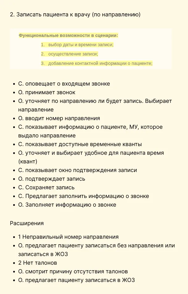 Описали основные сценарии работы сотрудника службы записи к врачу.