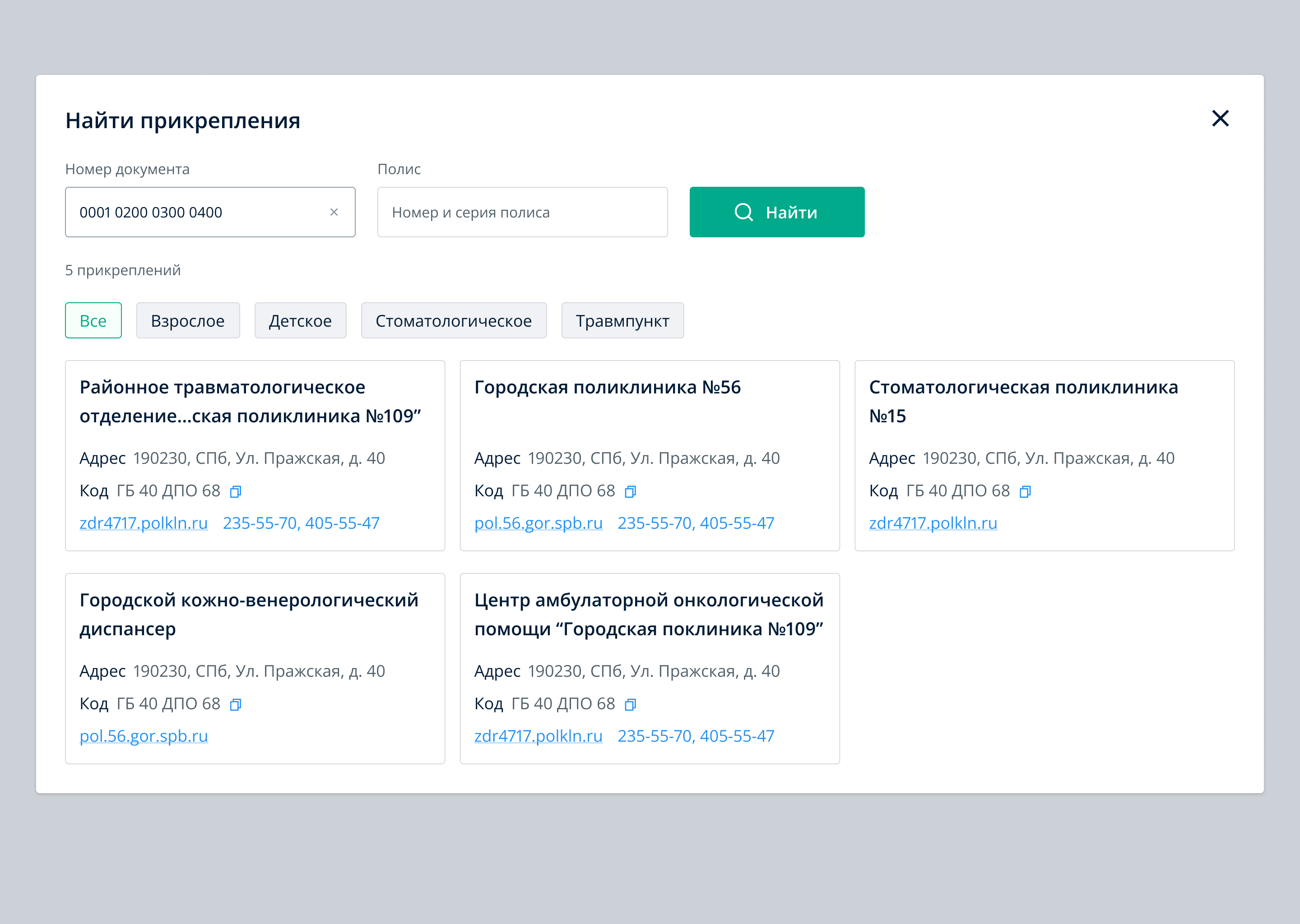 Поиск медицинского учреждения по прикреплению