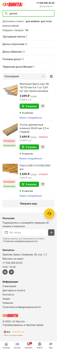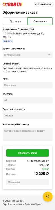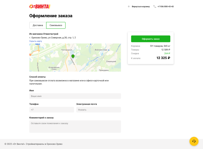 «От Винта» — молодая компания, торгующая строительными и отделочными товарами в Орехово-Зуевском районе Московской области. Целевая аудитория — не только местные жители, но и проезжающие мимо дачники. Интернет‑магазин — важный канал работы с ними.
