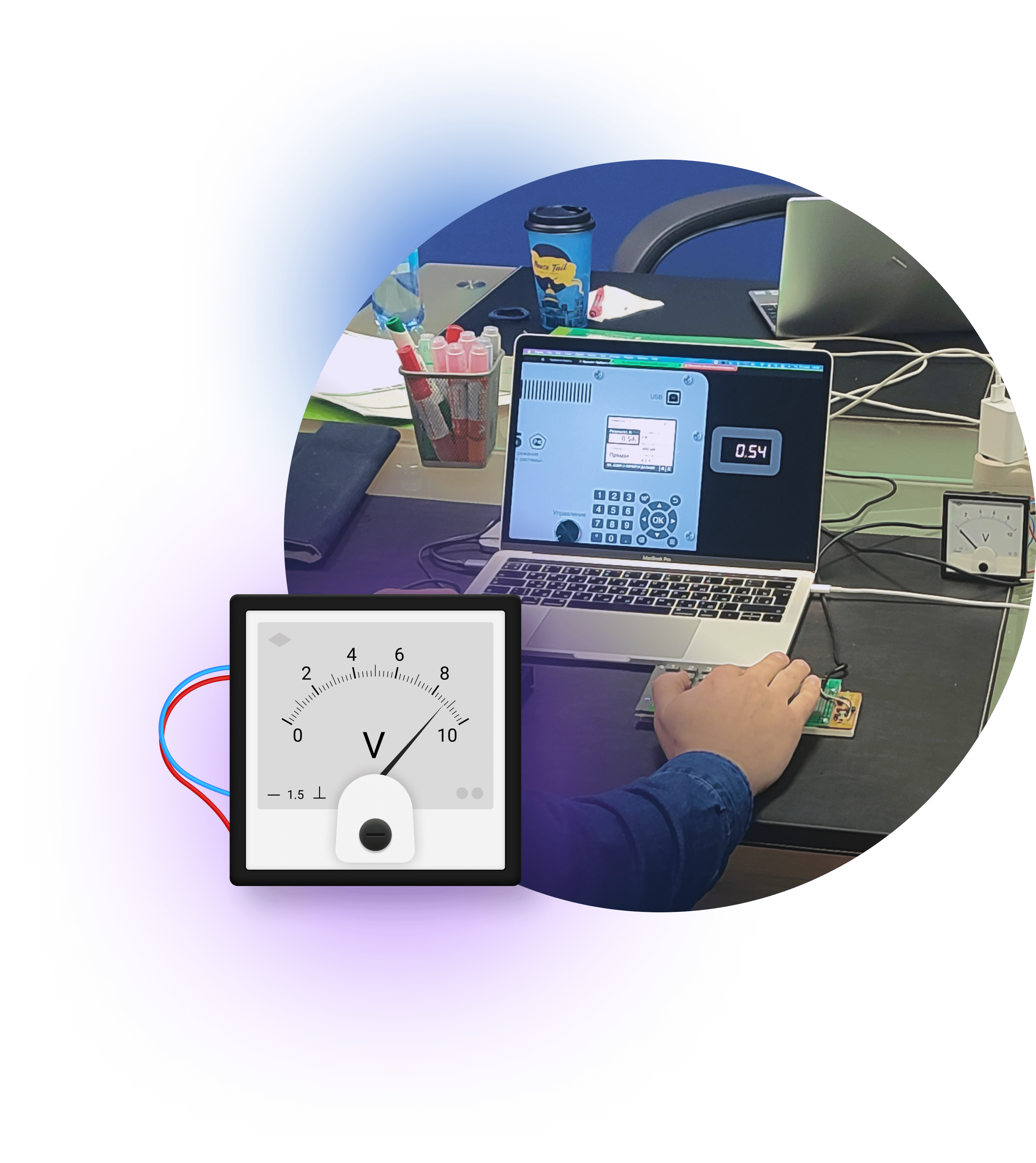 Прототип в Figma имитировал не только интерфейс калибратора, но и работу аналогового вольтметра.