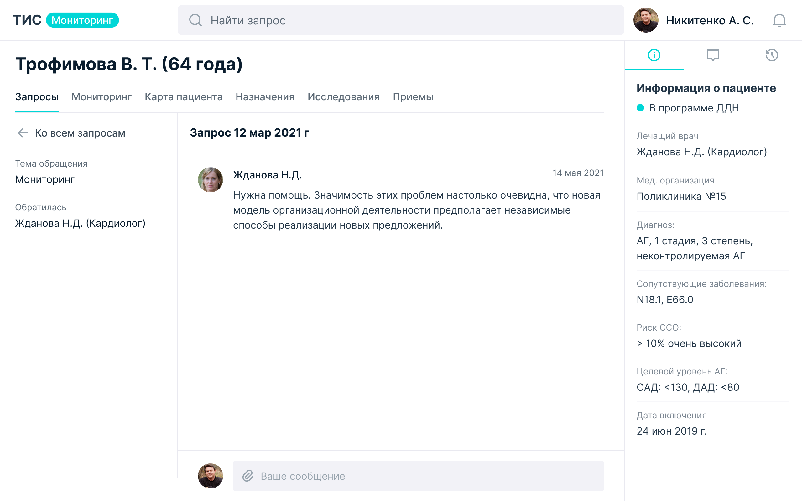 ТИС (телемедицинские информационные системы) — команда, которая создает программное обеспечение для дистанционного диспансерного наблюдения (ДДН) пациентов с сердечно-сосудистыми заболеваниями. Бизнес-задача компании — включить в систему ДДН к 2024 году до 70% состоящих на диспансерном наблюдении россиян.